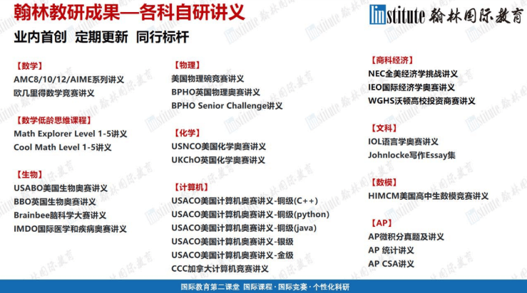 其生意邦畿笼盖数学、物理、化学、生物、推算机、商科、数模等简直总共热门邦际竞赛,并正在各学科中永远维系头部领先职位,比如正在USACO(美邦推算机奥赛)、CCC(加拿大推算机竞赛)等赛事中,其学员屡屡斩获白金级、金奖级又名誉,乃至培育出邦度队级其它选手,这阐明了其教学系统的有用性与顶尖性。